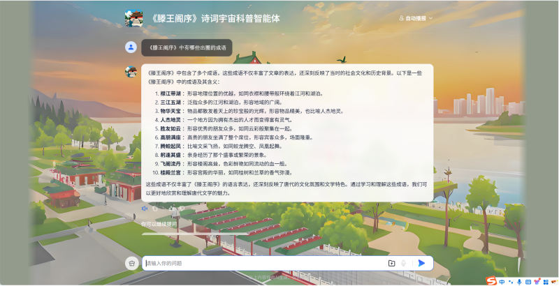 ▶跟着AI导游穿越盛唐,解析"落霞与孤鹜齐飞"里的文学密码,成语典故张口就来!