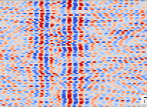 研究人员首次证实,通过非入侵测量手段测量大脑快速电磁震荡,能够展示大脑对相继刺激的显著反应变异(不同的行),相继动作电位持续时间(纵向条纹的蓝色或红色改变)和电位强度(颜色深度)均存在变异。 (图片来源:Charité, Gunnar Waterstraat)