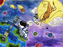 航天日绘画作品《千年之约》,北京市西师附小罗昭依