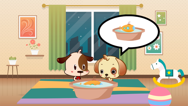 炎热的暑假到来了,开开和心心在家里围着一个水盆玩水,开开将潜水艇玩具两侧水舱灌满水,潜水艇就向下沉入水中。心心好奇地问开开:“我刚才玩的时候,它明明是飘在盆里的呀,你是怎么让它沉下去的?”